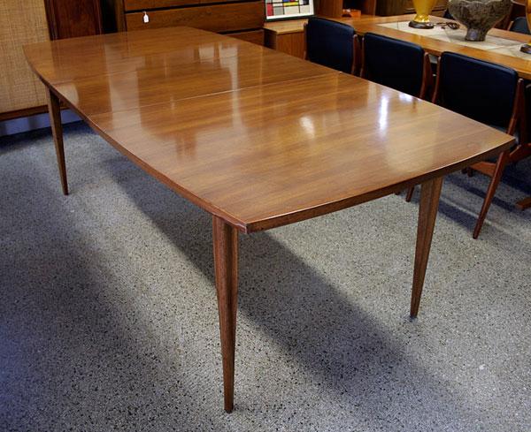 Broyhill emphasis mid century walnut surfboard expanding dining tabletable measures: Since 1926 broyhill furniture has made quality furniture at an affordable price. Broyhill, inc one north market square p.o. Each leaf is 18 inches wide, making a maximum table width of 78 inches when both leaves are used, and a chair clearance of 25.5 inches. This table has two 18 inch leaves so you can easily accommodate dinner guests.
