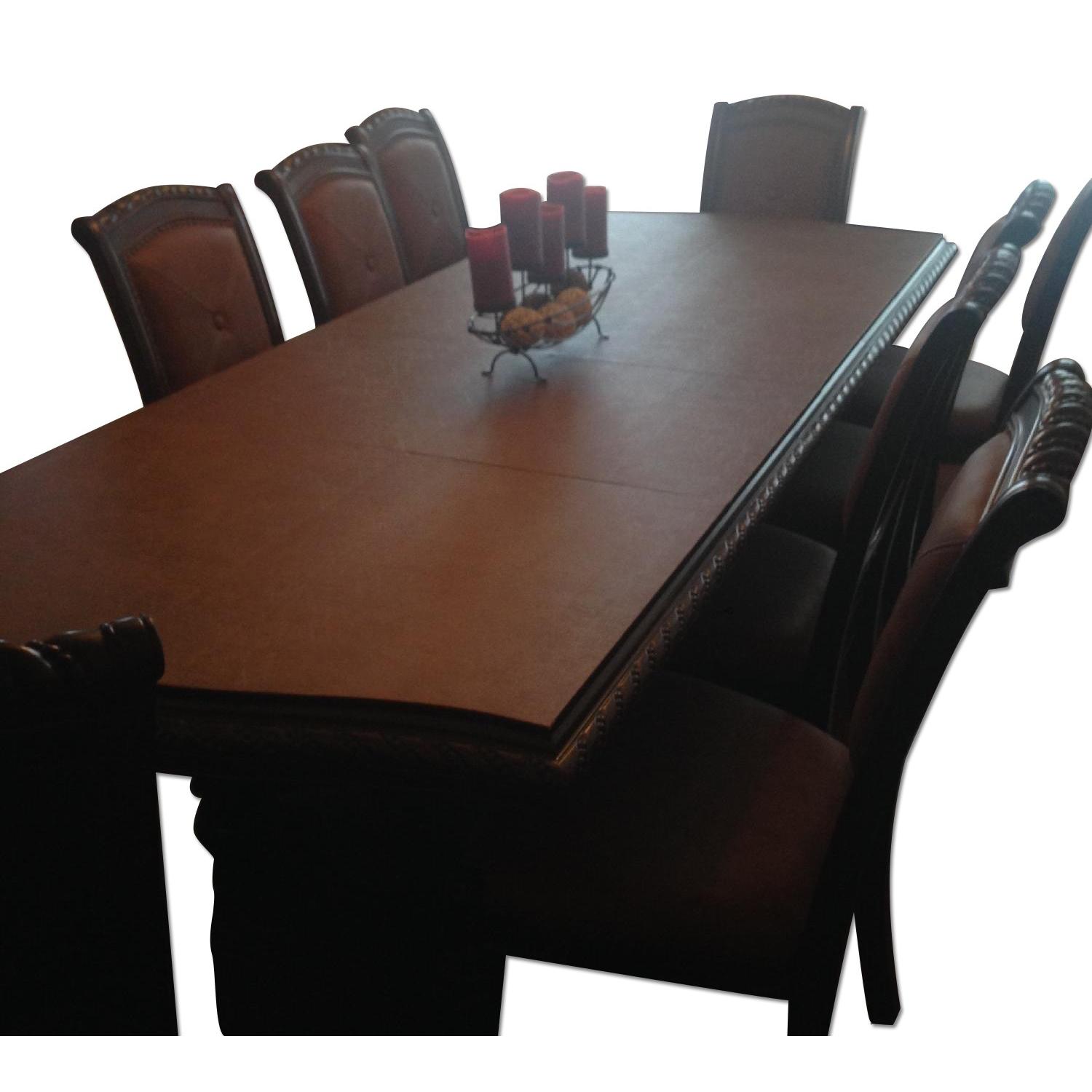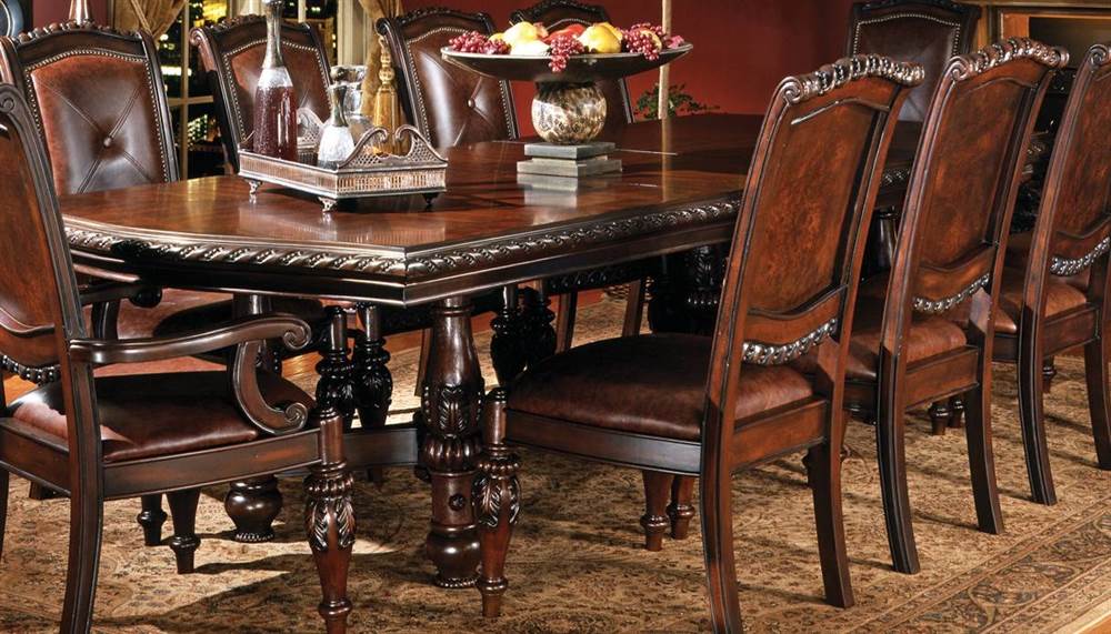 Antoinette Toughened Mirror Dining Table Mirror Dining Table Dining Room Decor Modern Luxury Dining Room from i.pinimg.com Trestle table and chairs feature hand carved details on legs and edges. Buy as a set and save. This dining table set includes a sturdy oval table. Quick view add to cart. This rectangular pedestal dining table is accessorized with four side chairs and two arm chairs. The table top stands on a forest of intricately carved legs, each one wearing flourishes of frond leaves. Become a marvelous host for special events. Antoinette warm brown extendable double pedestal dining room set.